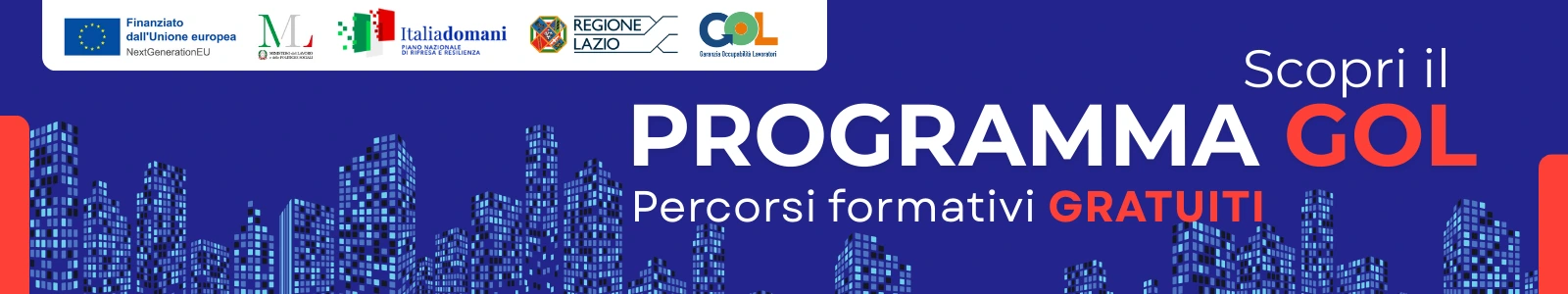 Ente Accreditato dalla regione Lazio Accreditamento Regione Lazio per la formazione det. G 12241 del 08/09/2017 Accreditamento Regione Lazio per i Servizi per il Lavoro det. N. G02714 del 05/03/2025